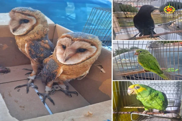 Na ocasião, policiais do Grupo Tático Ambiental (GTA) receberam uma denúncia sobre a venda das aves. Ao abordarem o homem, constataram a presença de duas corujas-suindara dentro de uma caixa (imagem em destaque).